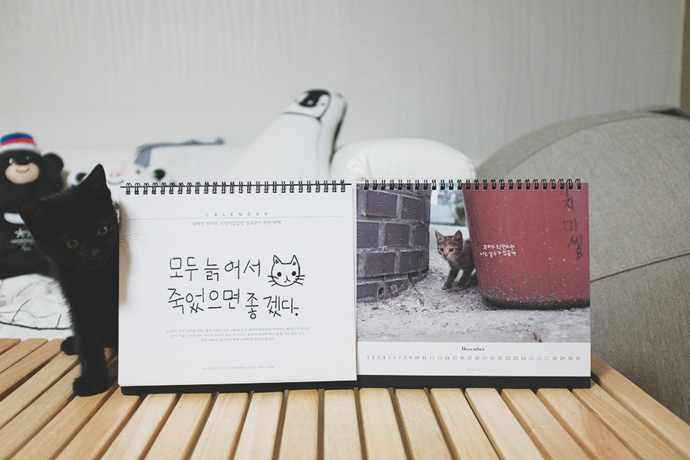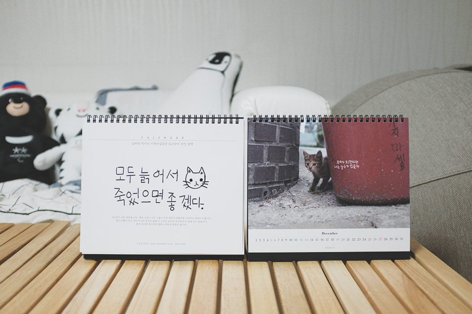 10월 말이 되면 슬슬 새 달력과 다이어리에 대한 프로모션이 쏟아져 나오기 시작하는데, 내년에 업무용으로 사용할 다이어리는 이미 구매했고 탁상 달력은 으레 이 달력을 사려고 기다리고 있었다. 찰카기 김하연 작가의 이천이십일년 길고양이 사진 달력