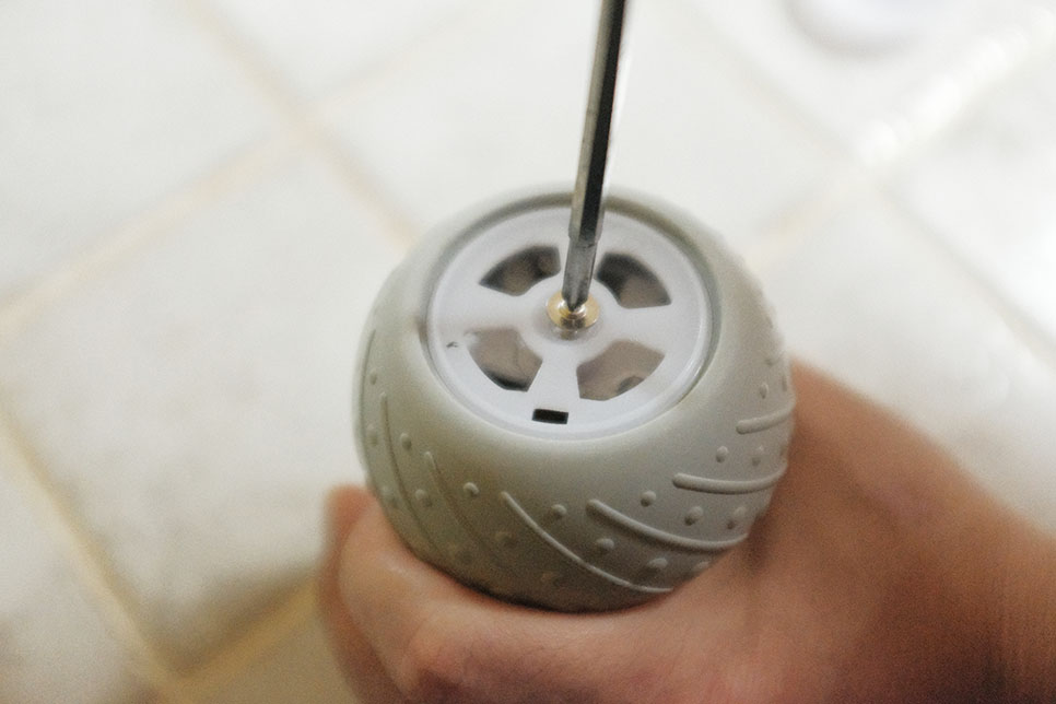 바퀴와 캡 사이에 일자 드라이버를 넣고 재껴준다.